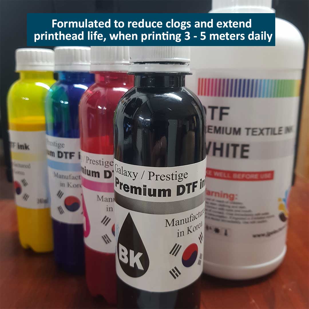 • Pairs well with most DTF printers. Made for Epson print heads (from commercial right through to industrial)